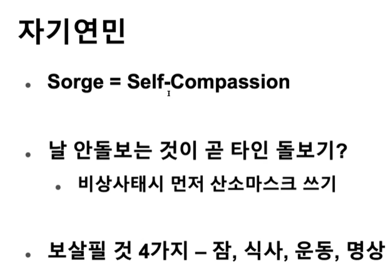 * 나를 보살펴야 남을 보살필수 있다. 스스로에게 친절하고 존중하기