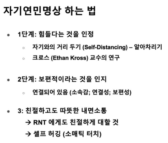 자기연민은 자기자신에 대해 관대해지는것X 나를 자책하고 안주하라는 의미가 아니다.