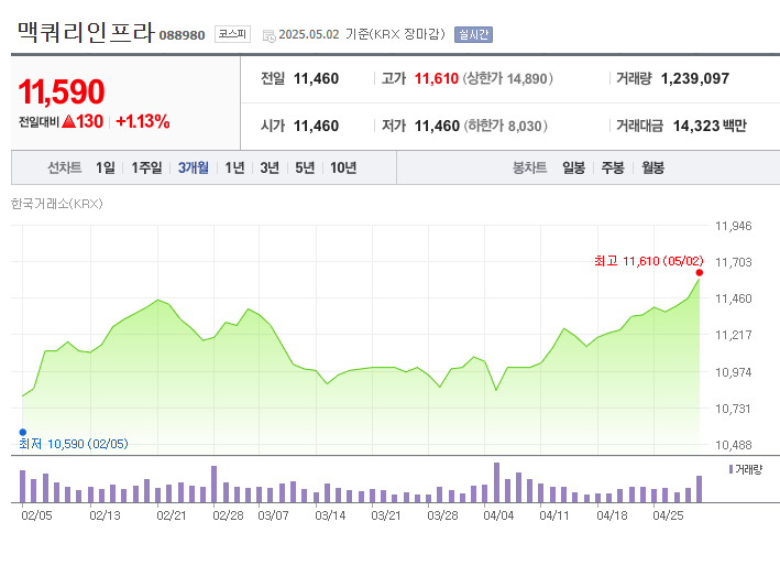 반려?주인 맥쿼리 인프라의 최근 상승세가 돋보인다.
